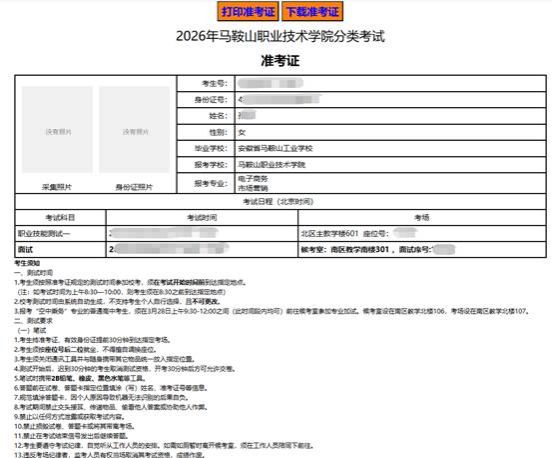 考生须在系统关闭前(3月23日24:00前)完成准考证下载或打印,否则不能完成校考报名,无法参加我院校考。